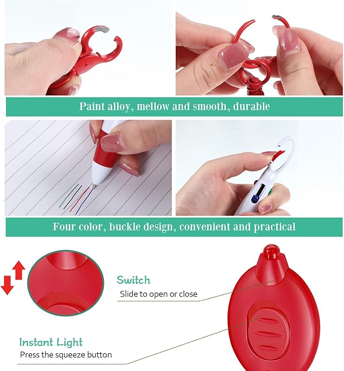 Chinco 30 Pcs Retractable Shuttle Pen Clip with Mini Highlighter Nurse Badge Pen Neon Marker LED Keychain Ring Clip
