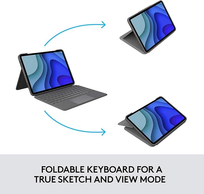 - Laptop-Like Typing: Large, well-spaced keyboard containing a full row of iPadOS shortcut keys lets you type comfortably with speed and accuracy