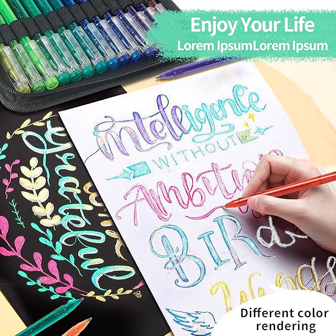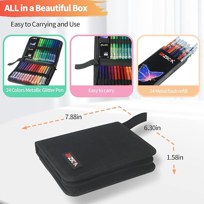 - PORTABLE STORAGE CASE AND GIFT BOX – Take your Gel Pen Set wherever you go for non-stop creativity. The travel pen case with individual inserts provides a nice option to stay organized, keeping your pens in good condition. Unleash your creativity and add a touch of sparkle to your artistic endeavors.