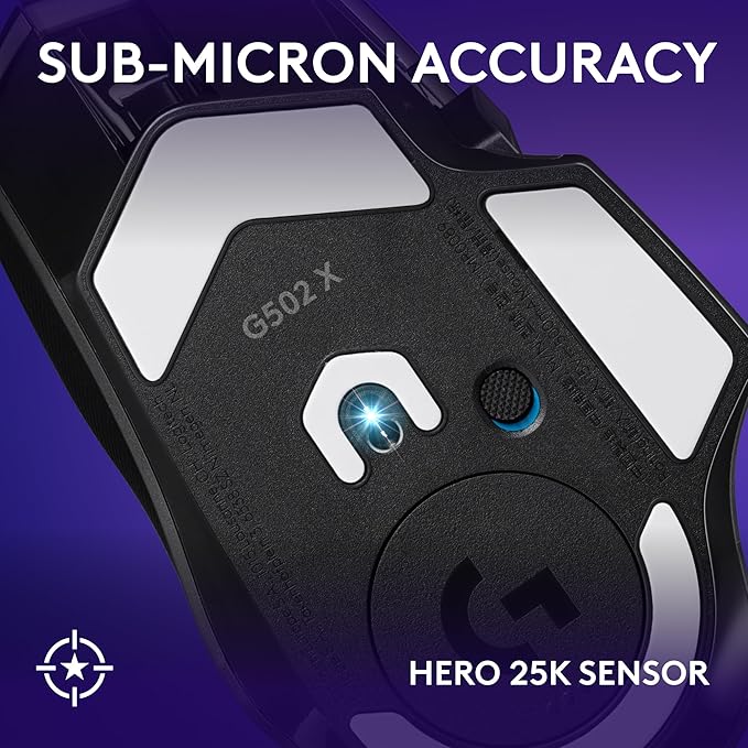 - G502 X PLUS includes sub-micron sensor to track movement with zero smoothing, filtering, or acceleration with pinpoint accuracy for high performance precision and control