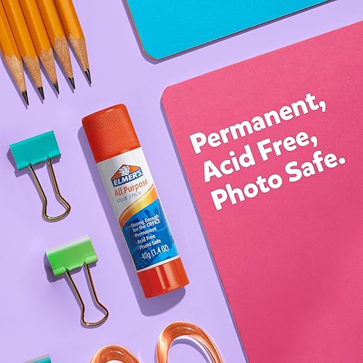 Elmer's All Purpose Glue Sticks,Washable & Non-Toxic,Clear,22 Grams,- Classroom,Household,Craft Projects,Poster,Vision Board,#1 Teacher Brand,12 Count (Pack of 8)