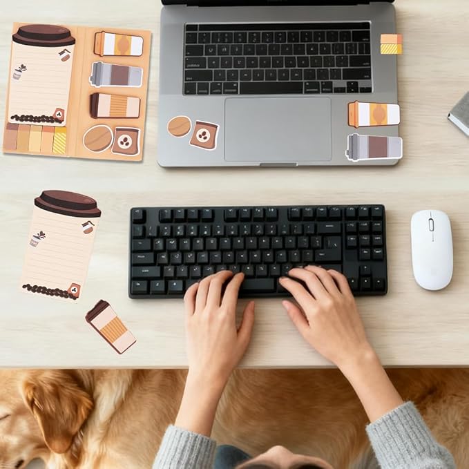 - High Quality】The paper used in this coffee sticky note set is soft and smooth to write on,with strong adhesive properties that won't leave residue when peeled off.Perfect for daily reminders,reading notes,bookmarking pages,or journal entries,these notes stick securely to office documents,computers,desks,doors,windows,walls,and refrigerators—capturing inspiration anytime,anywhere.