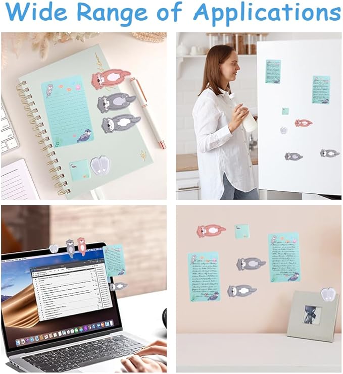 - High Quality】The paper used in this otters sticky note set is soft and smooth to write on,with strong adhesive properties that won't leave residue when peeled off.Perfect for daily reminders,reading notes,bookmarking pages,journal entries,or sticking to office documents,computers,desks,doors,windows,walls,or refrigerators—capture inspiration anytime,anywhere.